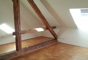 Für die Generalsanierung einer Dachgeschoß-Altbauwohnung war als Grundlage für die Architektenplanung ein aktueller 3D-Bestandsplan erforderlich. Dabei waren neben dem Grundriss vor allem die Raumhöhen, Dachschrägen und die Lage der in die neue Architektur zu integrierenden Dachbalken detailliert aufzunehmen.